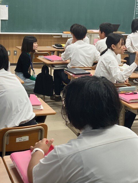 3学年社会科では名護市学習支援教室「ぴゅあ」の活動に係わっている、名桜大学の学生3名を講師に招き、「子どもの人権」や「教育を受ける権利」について学ぶことができました。協力して頂きました名桜大学の学生のみなさんありがとうございました。