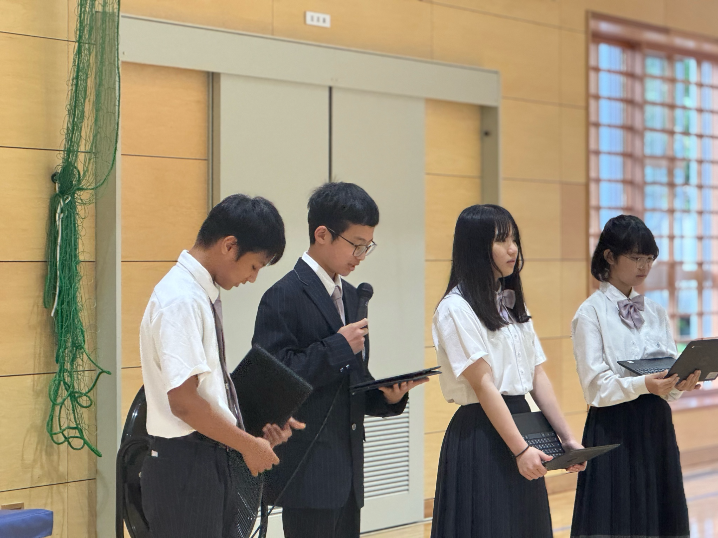 新年度中学集会を持ち、代表による決意の言葉がありました。